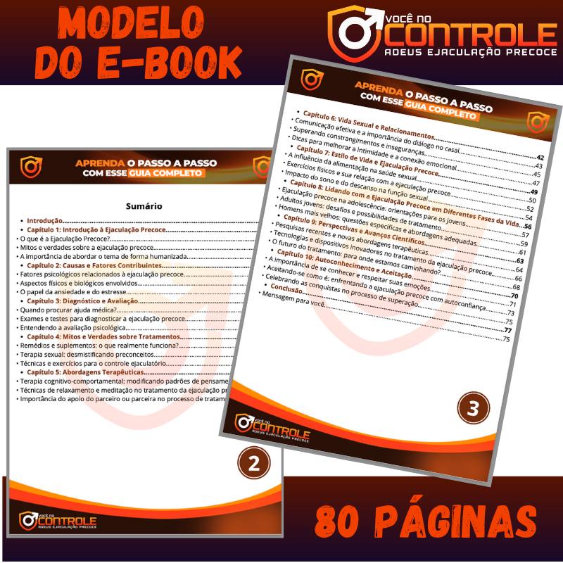 Você está cansado de lidar com a EJACULAÇÃO PRECOCE e deseja ter mais CONTROLE sobre sua vida sexual? Em "Você no Controle", você encontrará as estratégias e técnicas necessárias para superar a ejaculação precoce e ter uma vida sexual satisfatória.